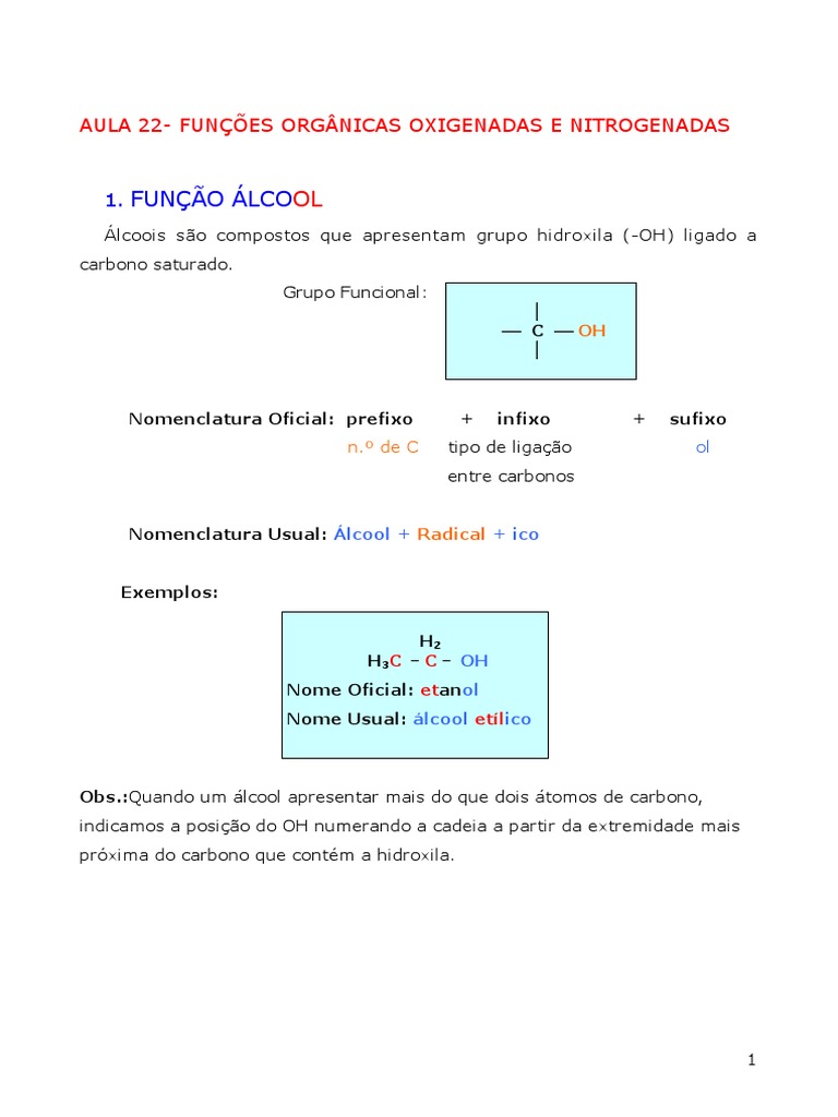 lcoois so compostos que apresentam grupo hidroxila (-OH) ligado a carbono saturado. Grupo Funcional: C OH