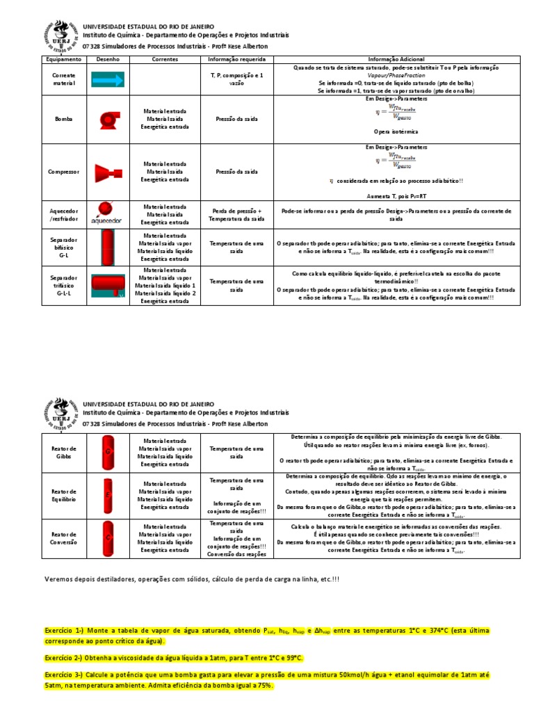UNIVERSIDADE ESTADUAL DO RIO DE JANEIRO Instituto de Qumica - Departamento de Operaes e Projetos Industriais 07328 Simuladores de Processos Industriais - Prof Kese Alberton