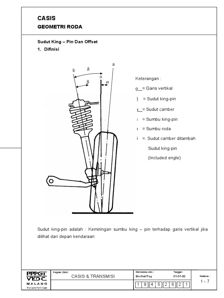 0. Tes +engu,angan 1.+. 8elaskan apa 4ang dimaksud sudut king pin C 1.0. 8elaskan apa 4ang dimaksud dengan arak o77set C 1.<. 8elaskan 7ungsi sudut king pin C 1... 8elaskan perbedaan kendaraan o77set positi7 dengan o77set negati7 C 8ika di rem pada saat melintasi kondisi alan 4ang elek 1./. Gambarkan o77set : :9 : > :9 : : C