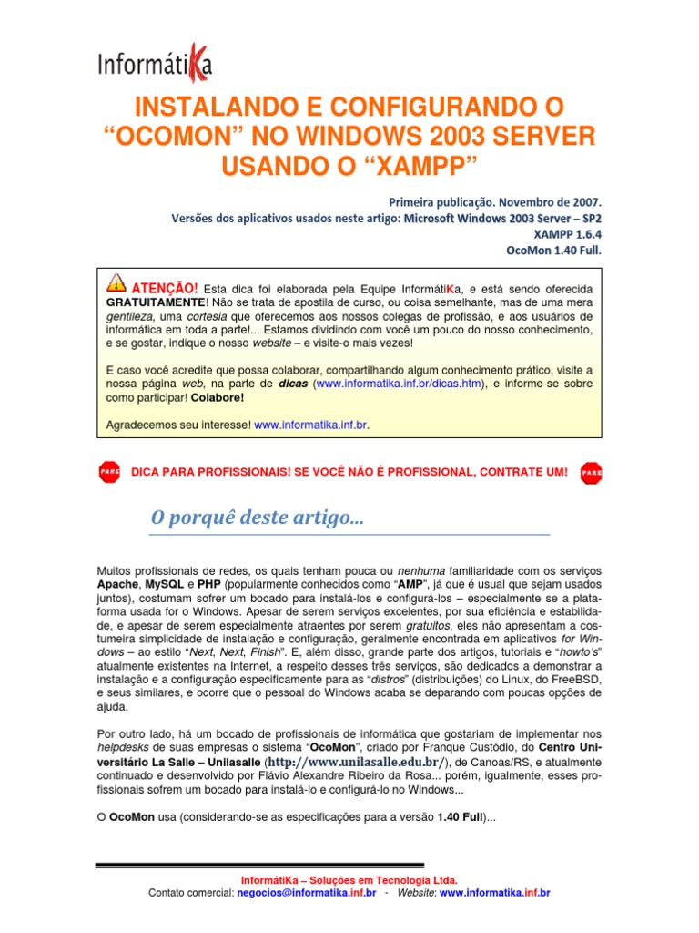 mento, em seu servidor Windows. Para isso, poderamos ensinar a instalar e configurar o trio Apa-