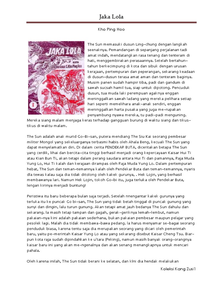 Sampai di sini, pengarang mengakhiri cerita JAKA LOLA ini yang merupakan bagian terakhir