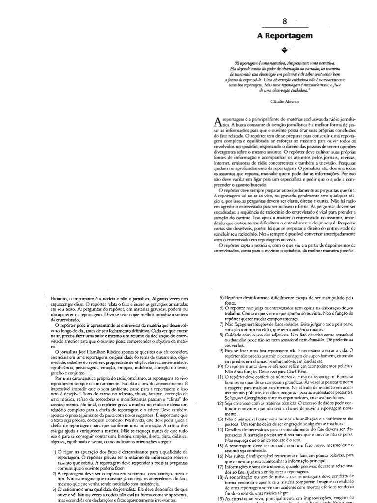 ser percorridos para que (I. reportagem prenda a ateno do ouvinte, atinja o