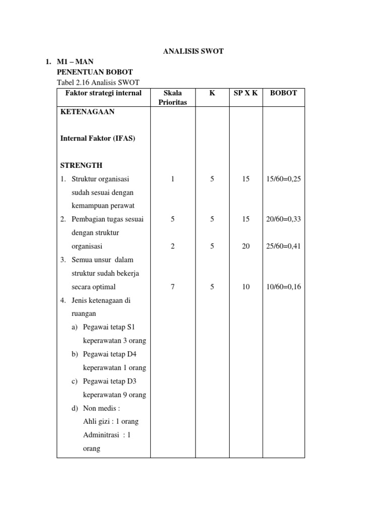 ANALISIS SWOT 1. M1 MAN PENENTUAN BOBOT Tabel 2.