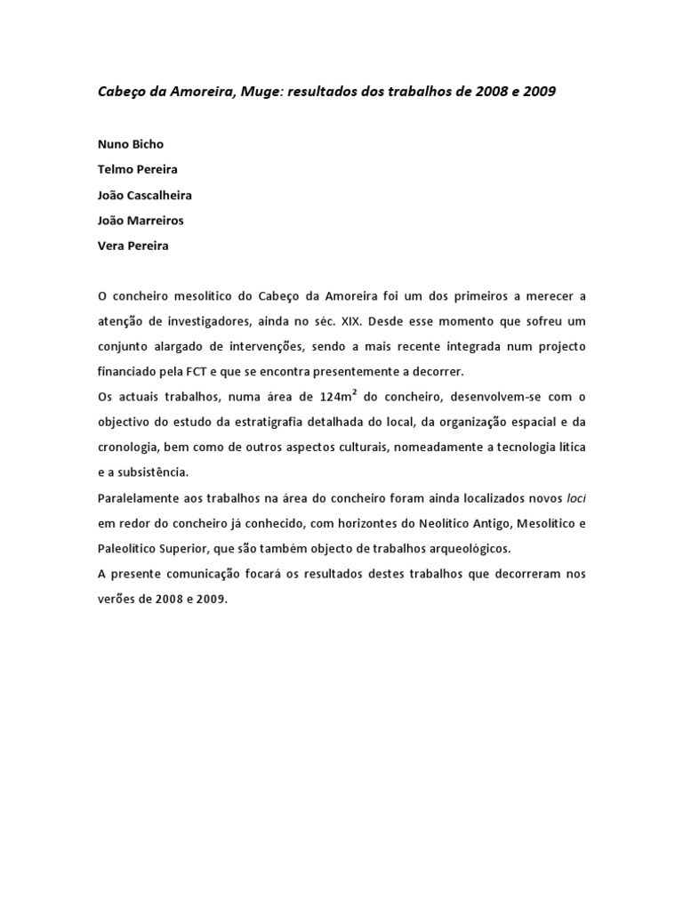 Cabeço da Amoreira, Muge: resultados dos trabalhos de 2008 e 2009