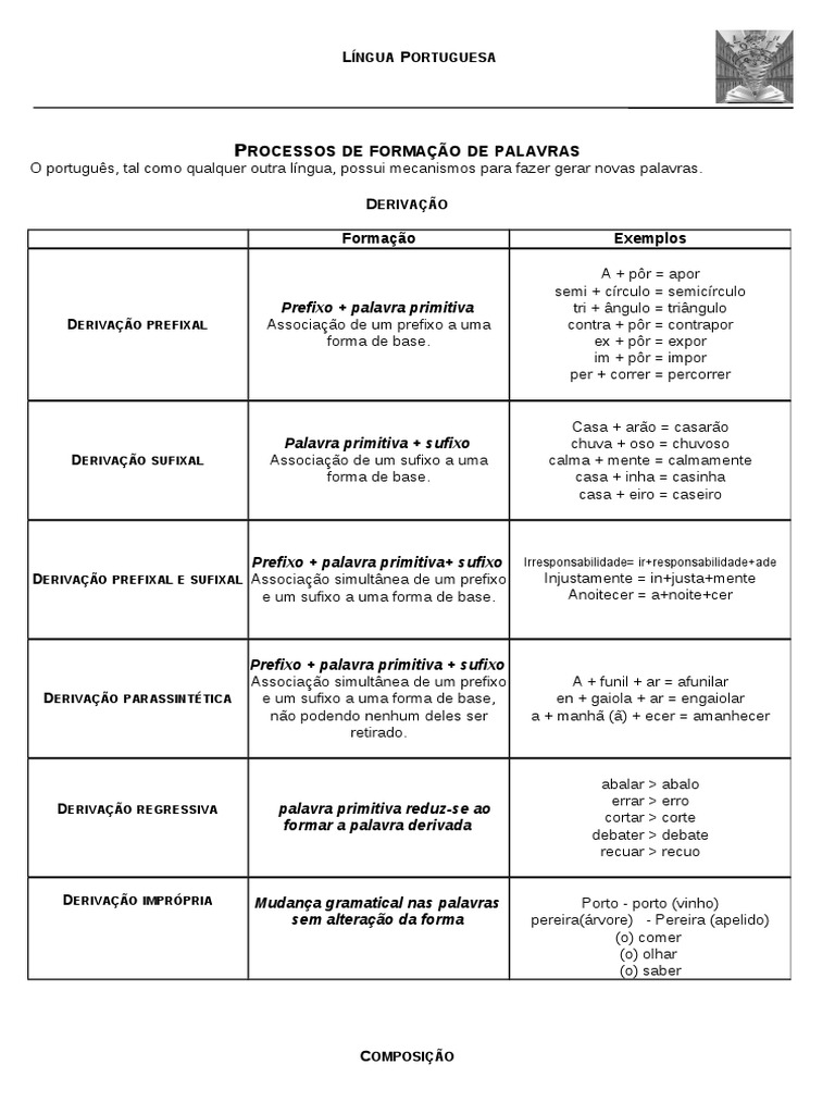 6. Agrupa as palavras abaixo em funo do seu processo de formao: Derivao (D) ou Composio