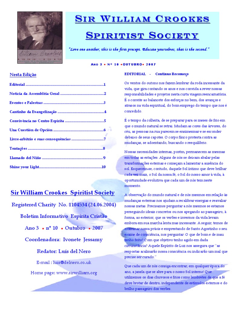 www.sirwilliam.org - Sir William Crookes Spiritist Society- UK