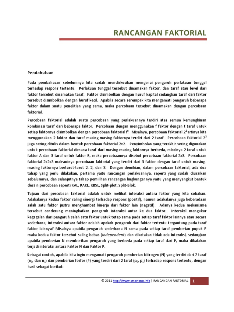 © 2011 http://www.smartstat.info | RANCANGAN FAKTORIAL 1