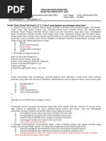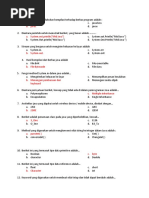 a. Penulisan keyword yang salah b. Kehilangan titik koma (;) c. Dibagi dengan 0 d. Kesalahan dalam penggunaan modifier class e. Kehilangan kurung kurawal pada blok method Sintaks apa yang digunakan untuk membuat komentar multi baris pada file Java source? a. \\ b. // c. \** *\ d. /** */ e. \* *\ Berikut ini yang merupakan pernyataan pemilihan (selection statements) kecuali.. a. if b. if-else c. else- if d. switch-case e. do-while Tipe data apakah yang bisa dijadikan parameter dari pernyataan if? a. int b. boolean c. float d. double e. char Manakah tipe data yang tidak bisa dijadikan parameter pada switch-case? a. int b. boolean c. char d. byte e. short