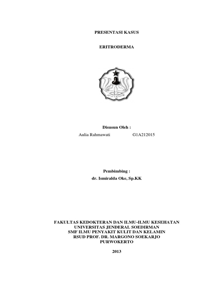 FAKULTAS KEDOKTERAN DAN ILMU-ILMU KESEHATAN UNIVERSITAS JENDERAL SOEDIRMAN SMF ILMU PENYAKIT KULIT DAN KELAMIN RSUD PROF. DR. MARGONO SOEKARJO PURWOKERTO 2013