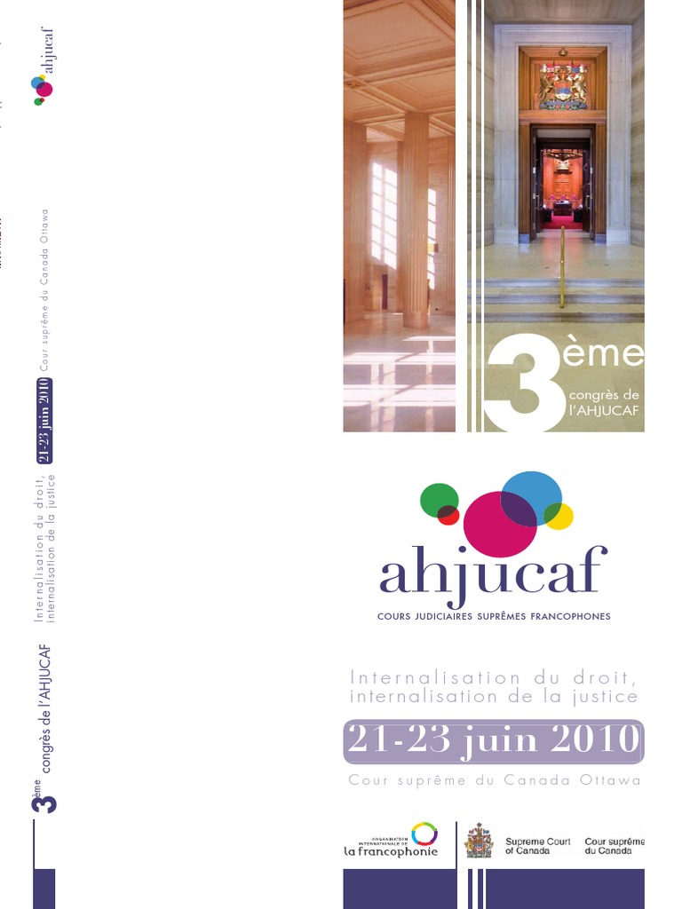 a h j u c a f . o r g . internalisation de la justice ahjucaf w w w.21-23 juin 2010 Cour suprême du Canada Ottawa Internalisation du droit.