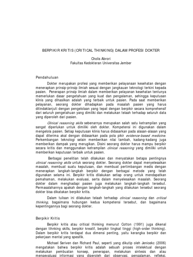 BERPIKIR KRITIS (CRITICAL THINKING) DALAM PROFESI DOKTER