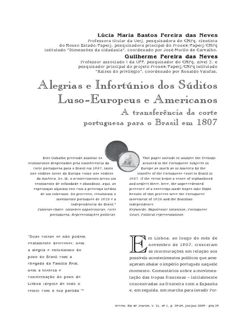 dia, eternamente memorvel, de 29 de novembro de 1807. Porto: s.d., 1808. p. 3 e 6.