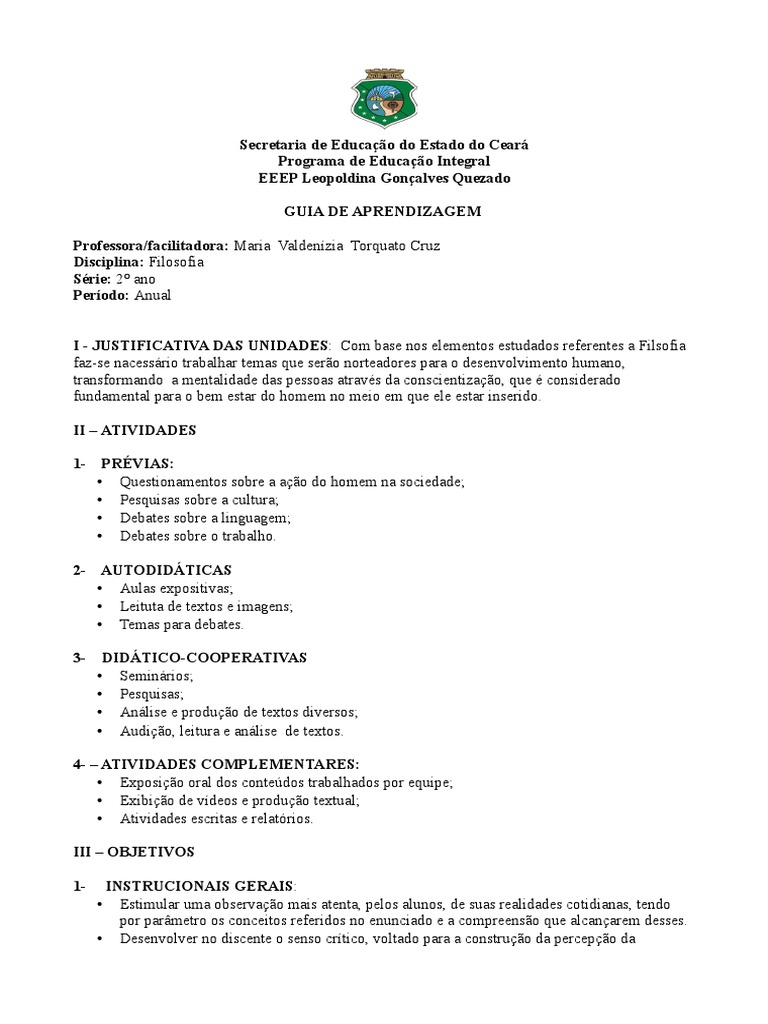 I * +US,I-ICA,I.A AS U"IAES: Com base nos elementos estudados referentes a Filsofia