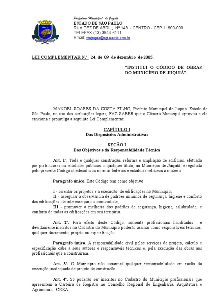 LEI COMPLEMENTAR N.º 24, de 09 de dezembro de 2005.