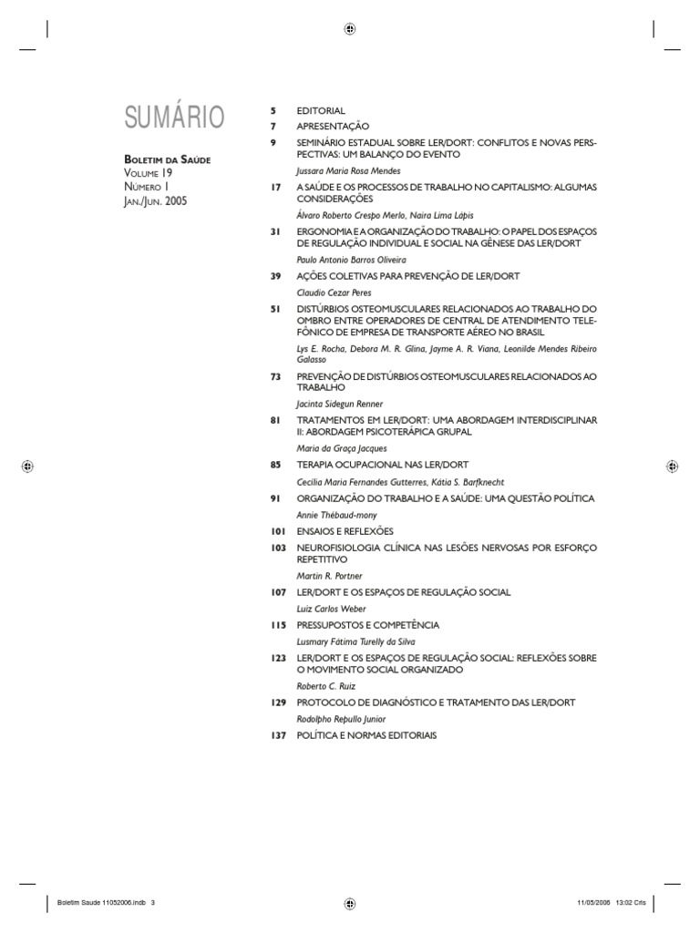 DE REGULAO INDIVIDUAL E SOCIAL NA GNESE DAS LER/DORT
