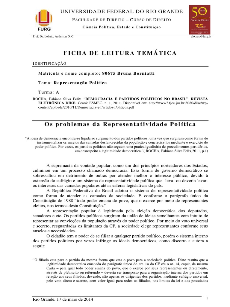 ROCHA, Fabiana Silva Felix. DEMOCRACIA E PARTIDOS POLTICOS NO BRASIL. REVISTA