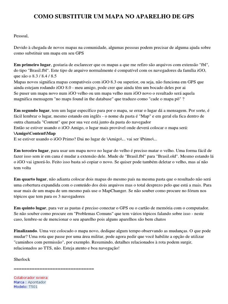 o iGO vai ignor-lo. Feito isso basta s copiar o novo. Se quiser pode tambm deletar o velho, mas a no