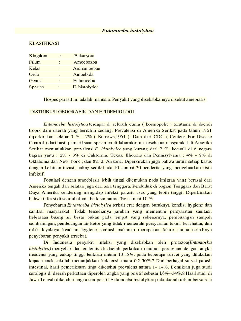 histolytica) menyebar dan endemis di daerah perkotaan maupun perdesaan dengan angka
