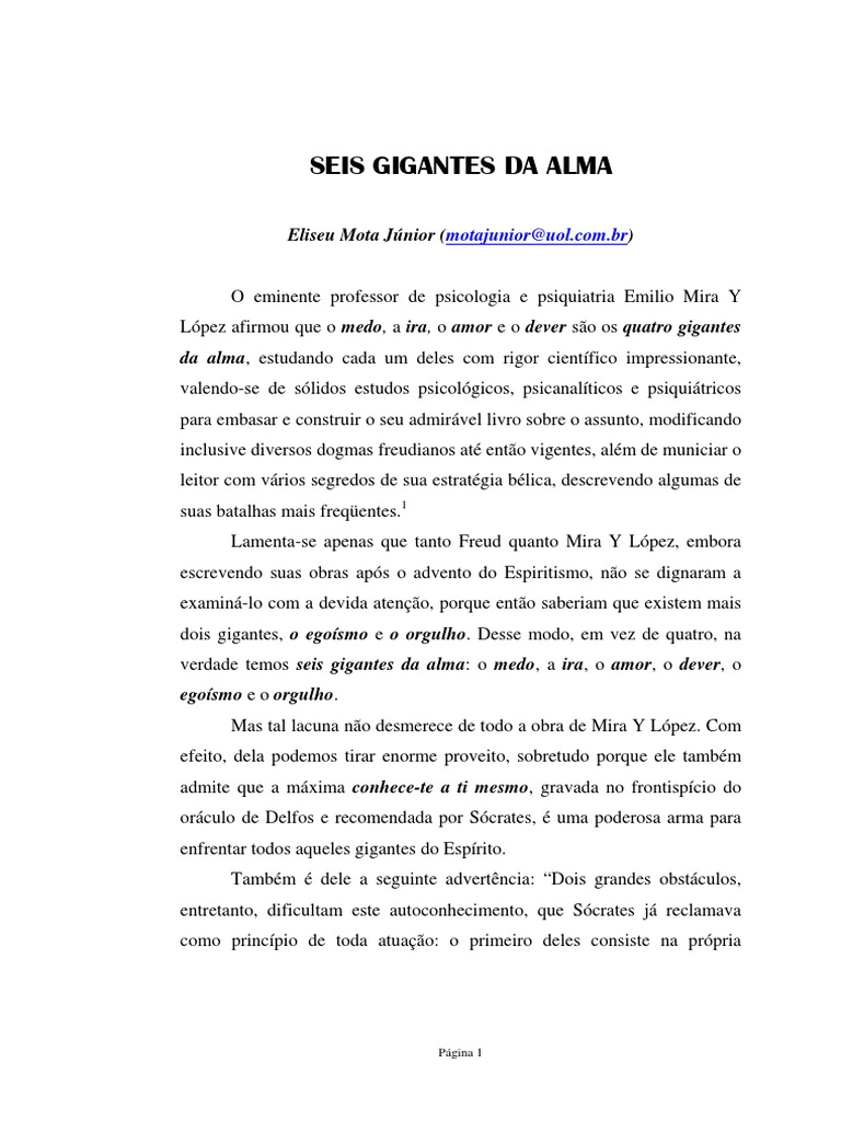Lamenta-se apenas que tanto Freud quanto Mira Y Lpez, embora