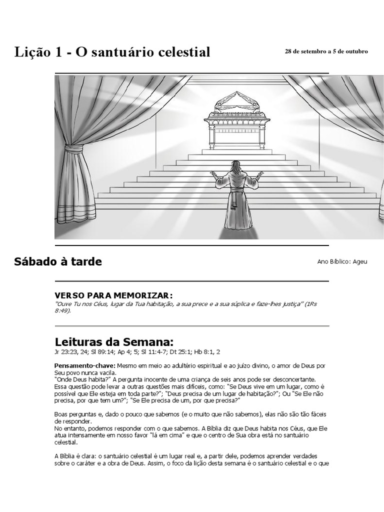 sobre o carter e a obra de Deus. Assim, o foco da lio desta semana o santurio celestial e o que