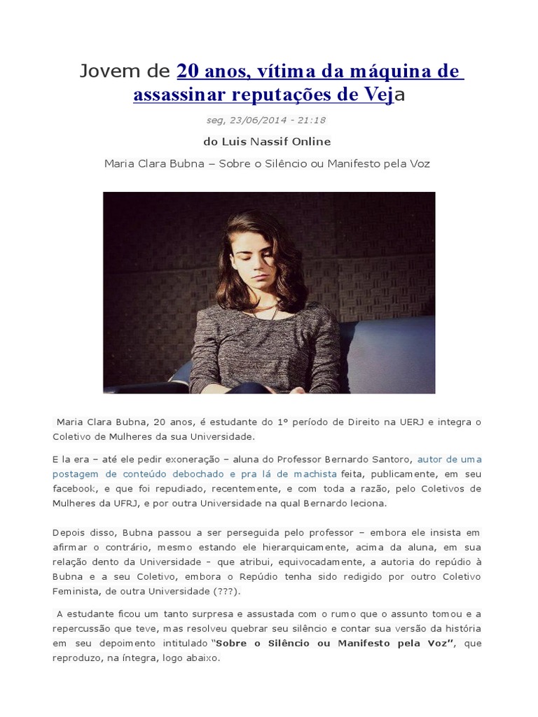 E parabns, de verdade a ti, Maria Clara Bubna, que optou por no ficar calada, apesar