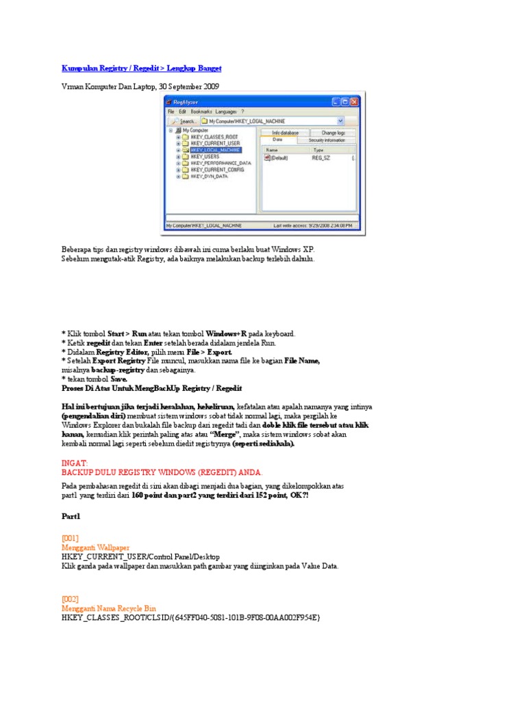 Kumpulan Registry Dan Setting