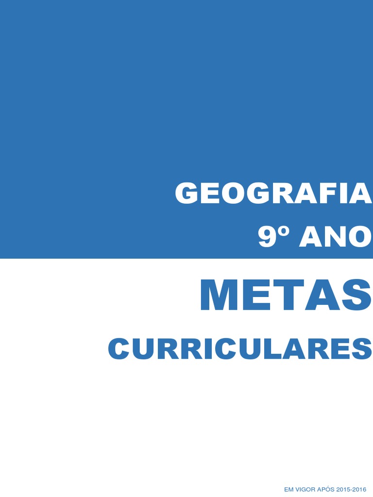 NOTA: As Metas Curriculares de Geografia para o 9 Ano entram em vigor no