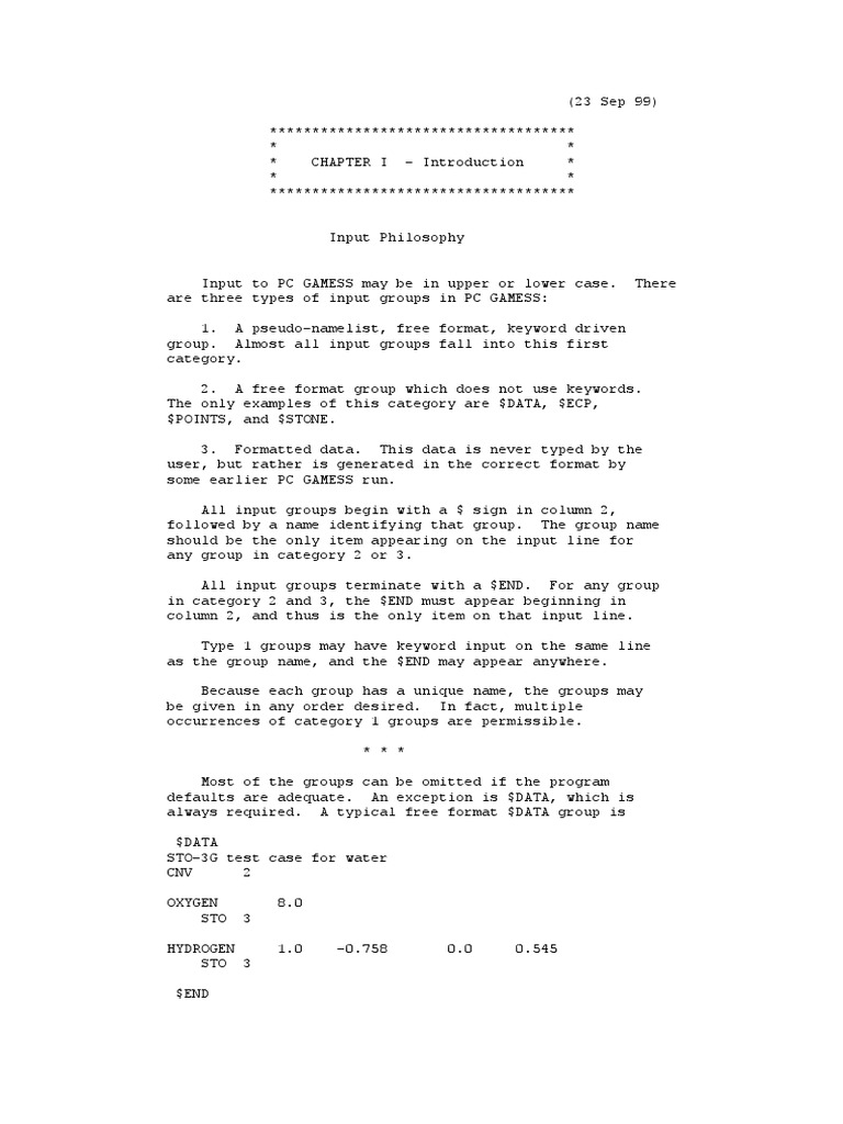 Input to PC GAMESS may be in upper or lower case. are three types of input groups in PC GAMESS: