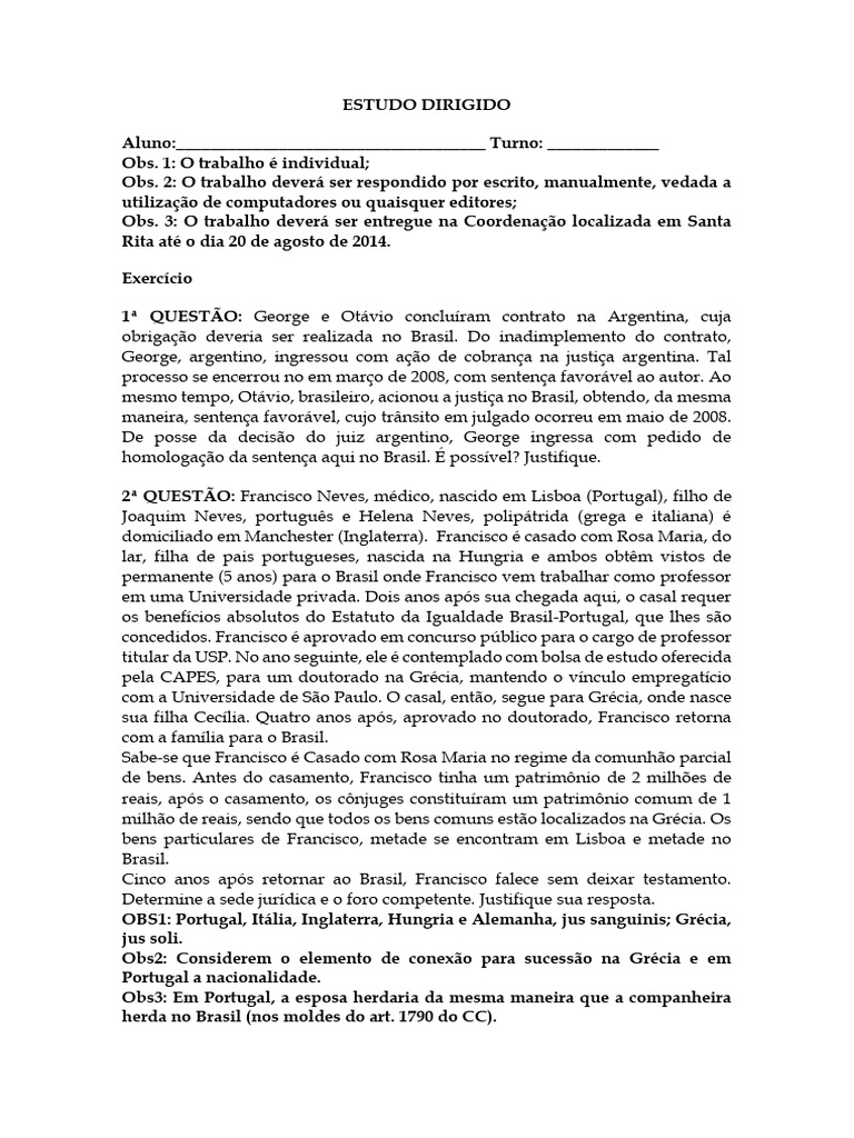 3 QUESTO: Cidado brasileiro, domiciliado no Brasil, prope ao contra os