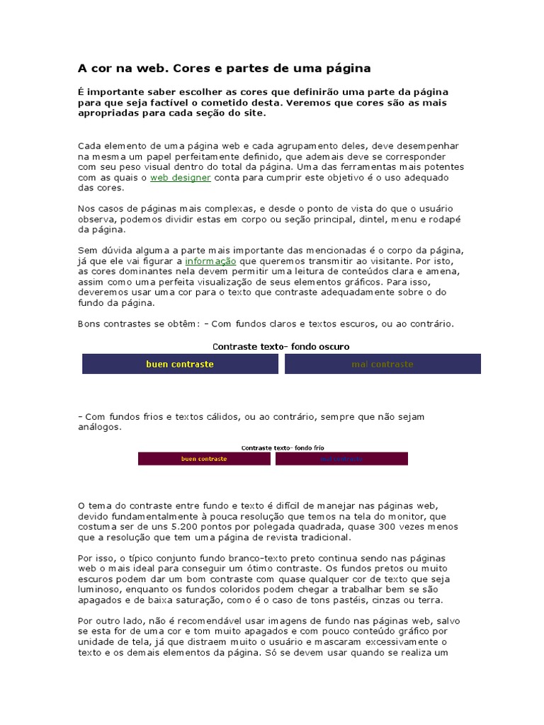 * tema do contraste entre fundo e texto dif+cil de manejar nas pginas web,