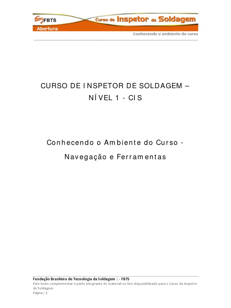 Este texto complementar é parte integrante do material on line disponibilizado para o Curso de Inspetor de Soldagem