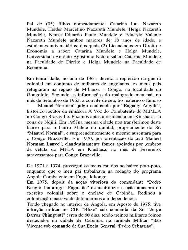 colonial em conjunto de milhares de angolanos, os meus pais
