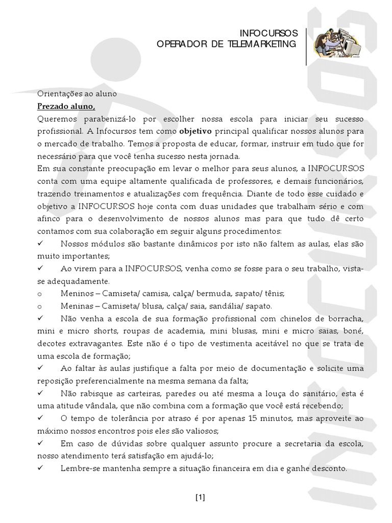 profissional. A Infocursos tem como objetivo principal qualificarnossosalunospara