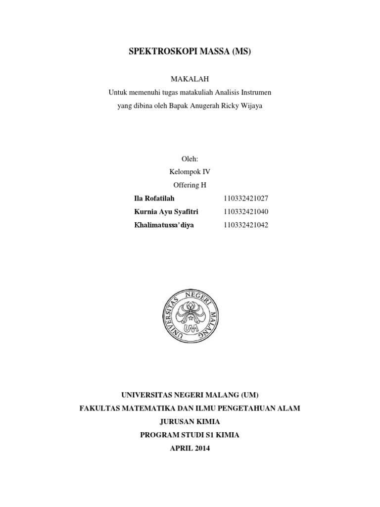 penentuan sampel telah dilakukan sebelum analisis dengan spektroskopi massa. Dengan