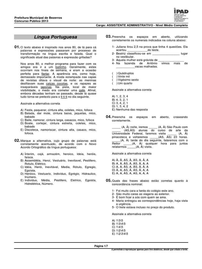 Prefeitura Municipal de Bezerros Concurso Público 2013