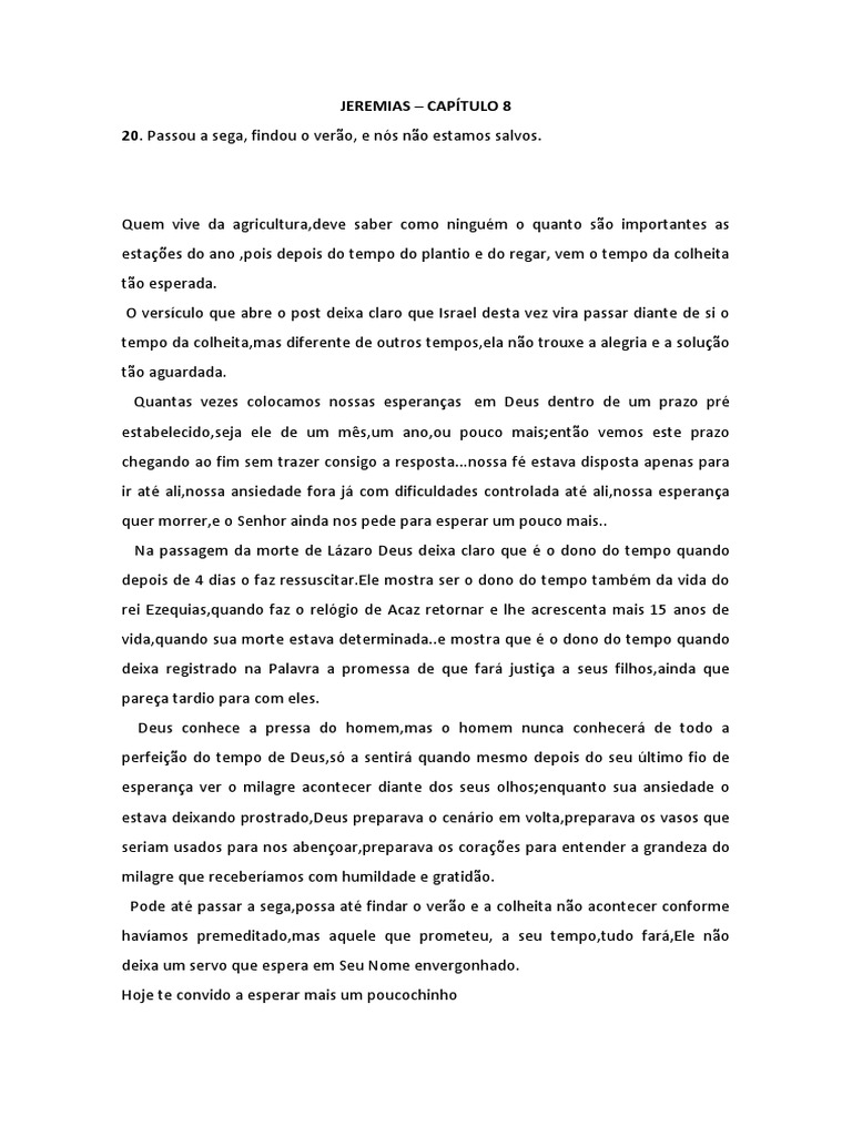20. Passou a sega, findou o vero, e ns no estamos salvos.