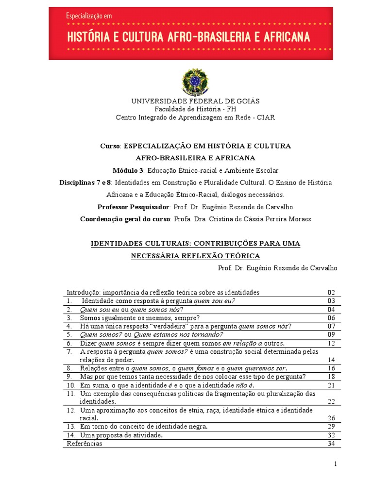 curso de especializao sobre histria e cultura afro-brasileira e africana, propomos como