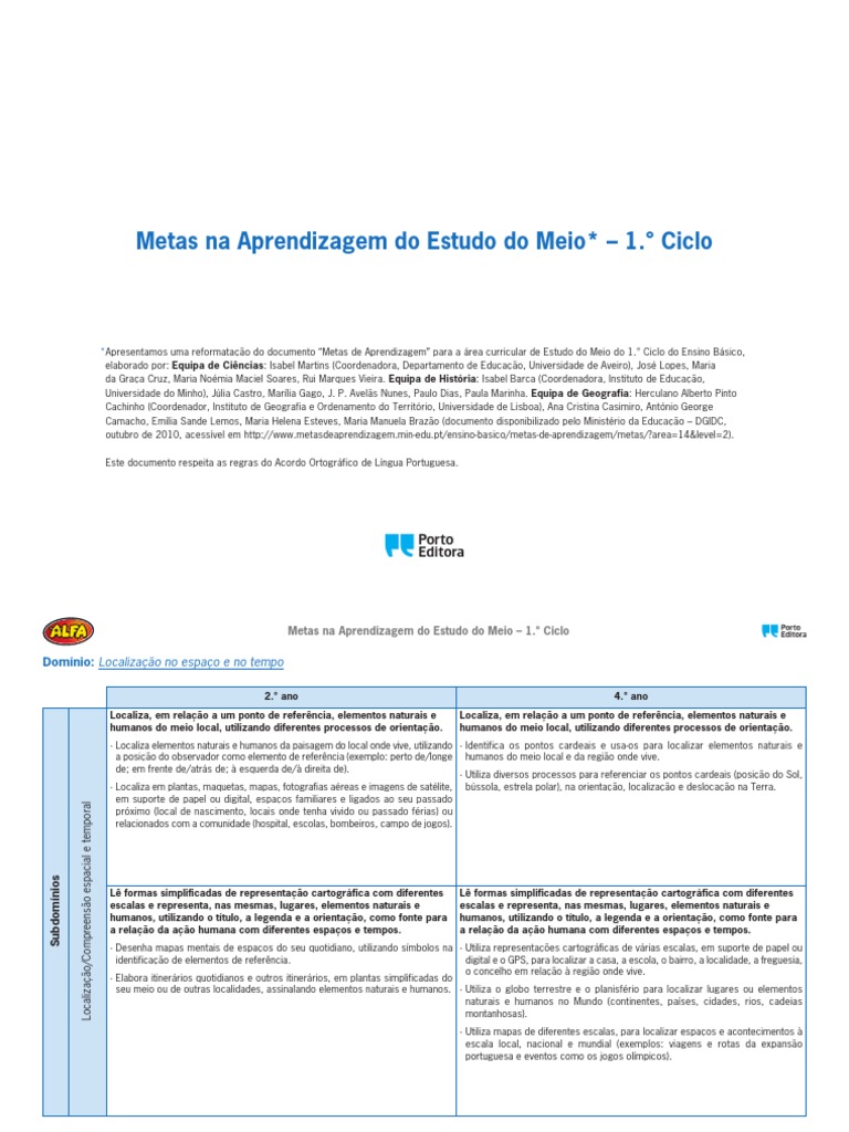 Metas na Aprendizagem do Estudo do Meio 1. Ciclo Oo