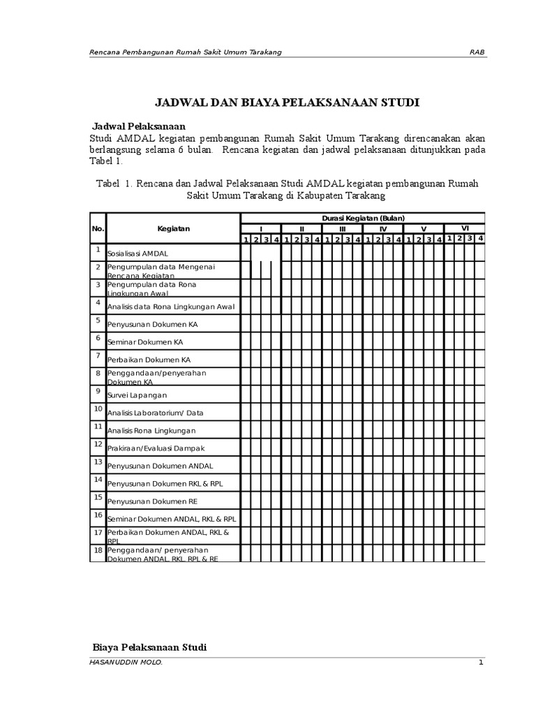 Tabel 1. Rencana dan Jadwal Pelaksanaan Studi AMDAL kegiatan pembangunan Rumah