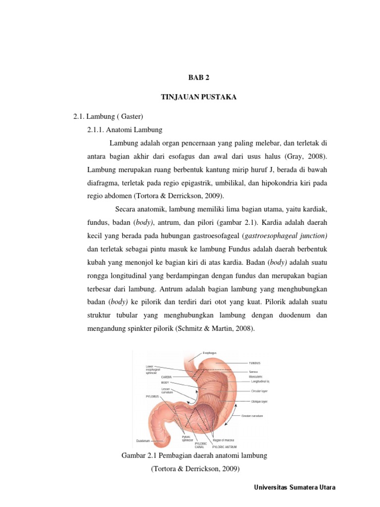 fundus, badan (body), antrum, dan pilori (gambar 2.1). Kardia adalah daerah