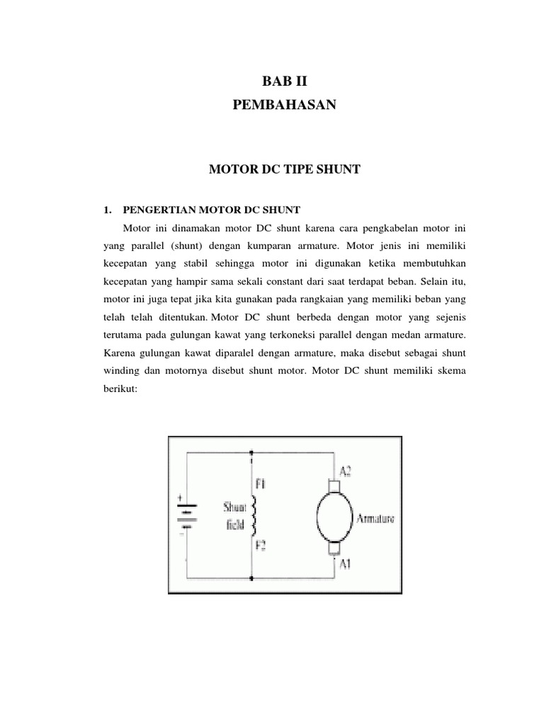 Motor DC shunt merupakan motor DC penguatan sendiri dengan
