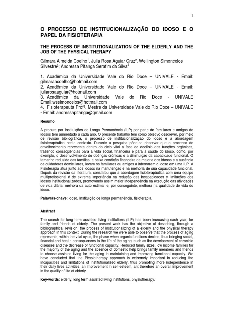 Palavras-chave: idoso, Instituio de longa permanncia, fisioterapia.