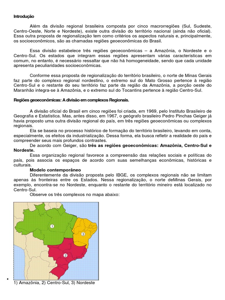 De acordo com Geiger, so trs as regies geoeconmicas: Amaznia, Centro-Sul e