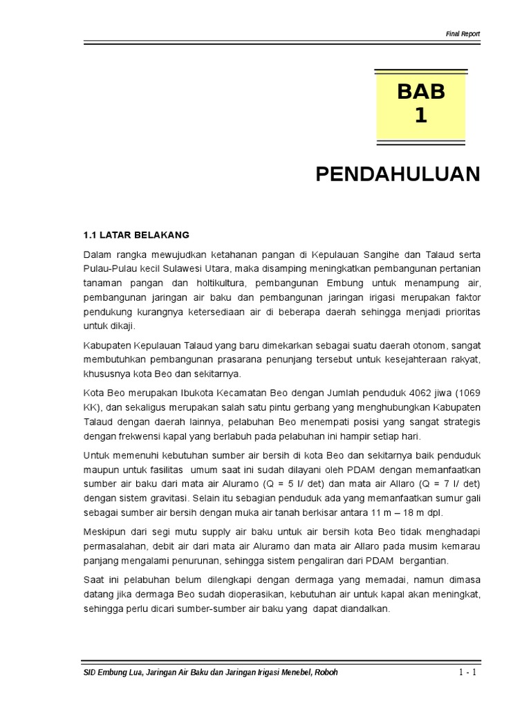 Maksud pekerjaan ini adalah melakukan detail desain Embung Lua, jaringan air baku,