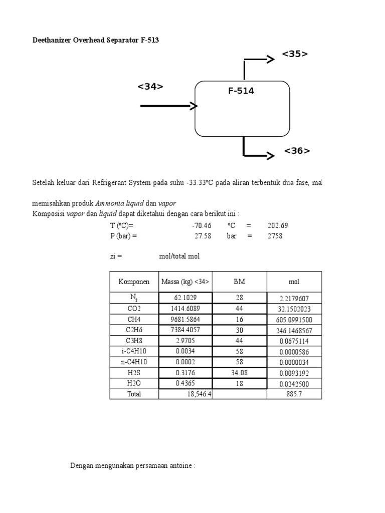 Komposisi massa vapor dan liquid pada flash drum :