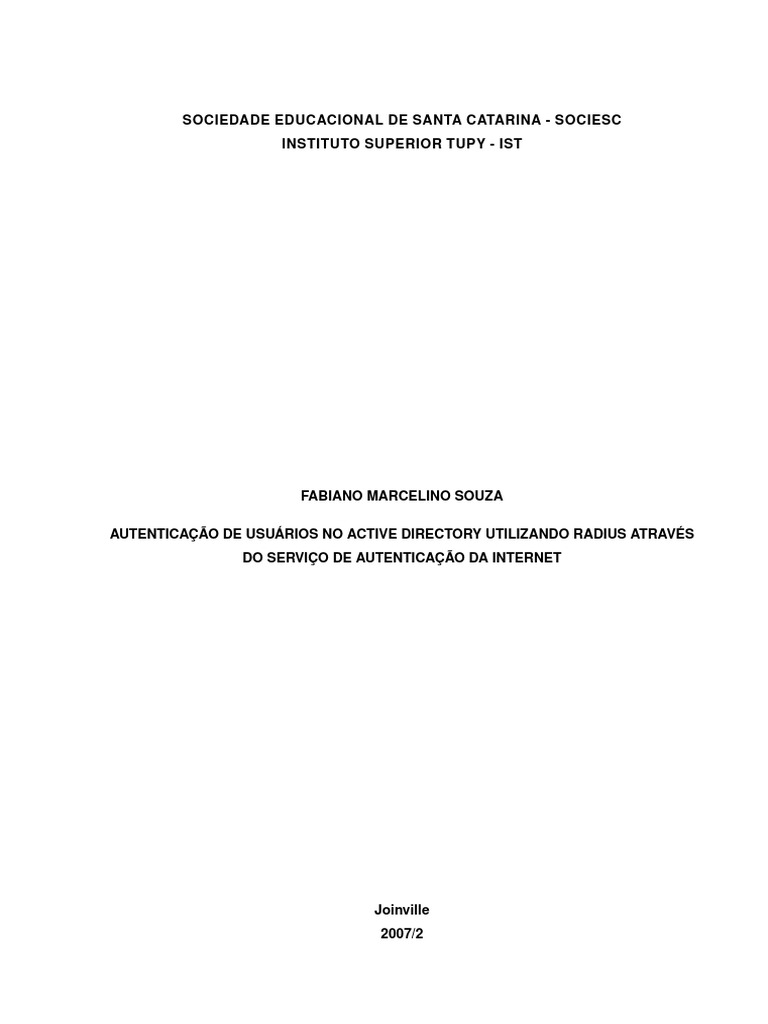 SOUZA, FABIANO. AUTENTICAÇÃO DE USUÁRIOS NO ACTIVE DIRECTORY UTILIZANDO RADIUS ATRAVÉS DO SERVIÇO DE AUTENTICAÇÃO DA IN- TERNET