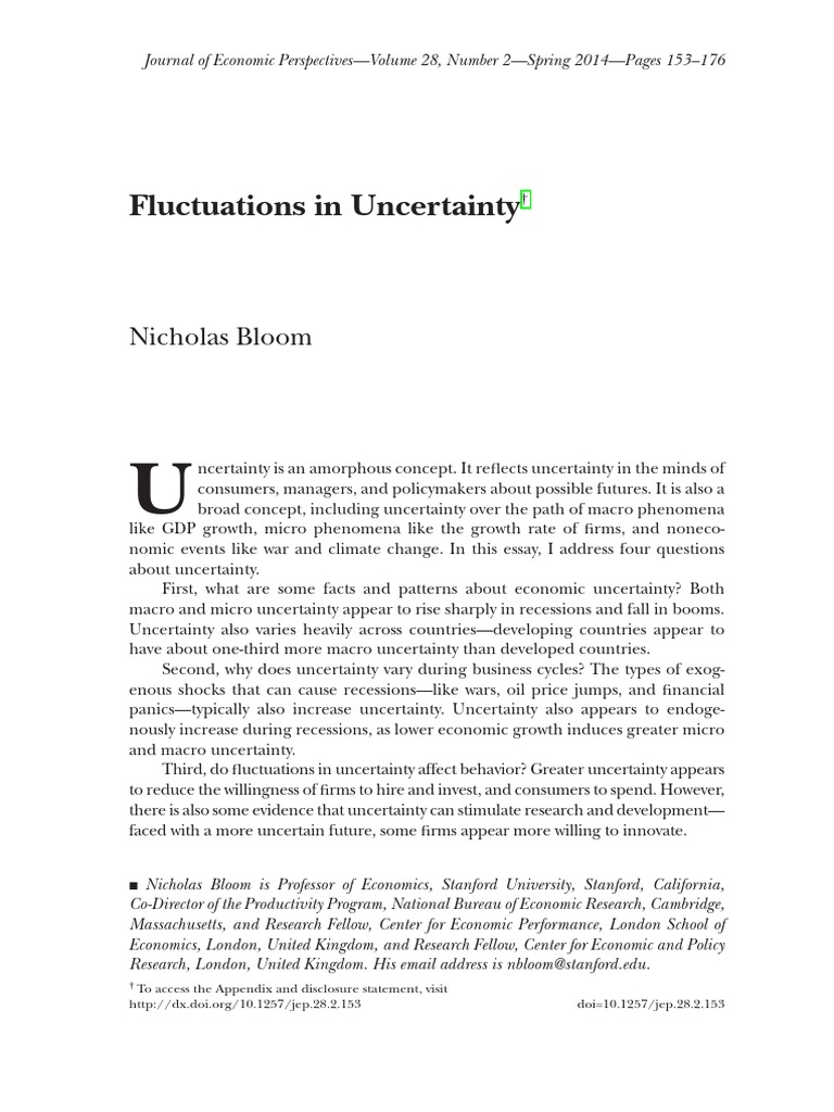 interest in uncertainty has been driven by several factors. First, the jump in uncertainty in 2008 and its likely role in shaping the Great Recession has focused policy