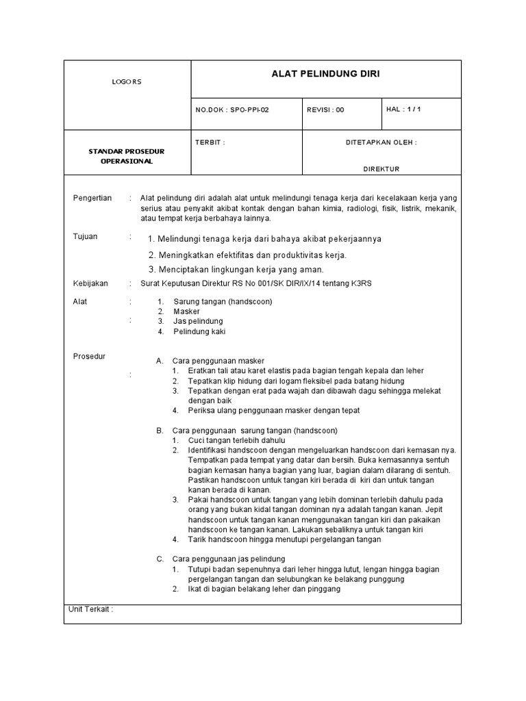 Surat Keputusan Direktur RS No 001/SK DIR/IX/14 tentang K3RS