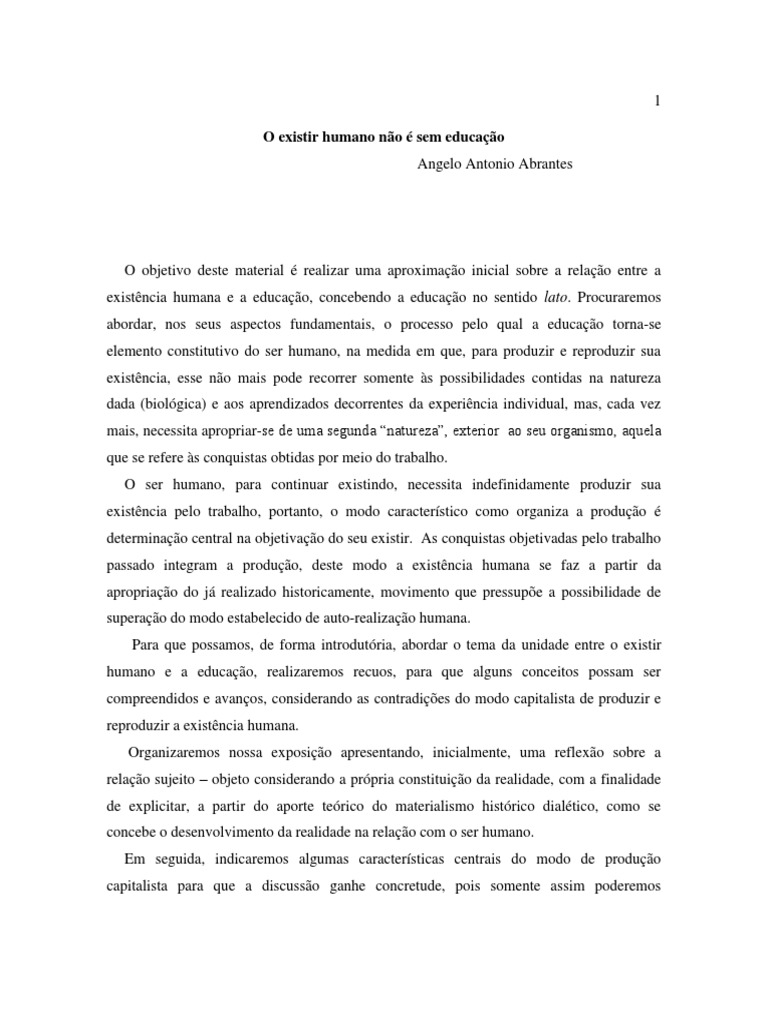 existncia humana e a educao, concebendo a educao no sentido lato. Procuraremos