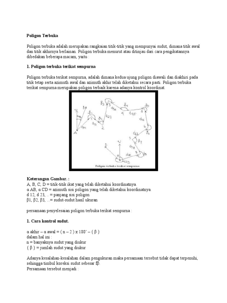 Poligon terbuka adalah merupakan rangkaian titik-titik yang mempunyai sudut, dimana titik awal